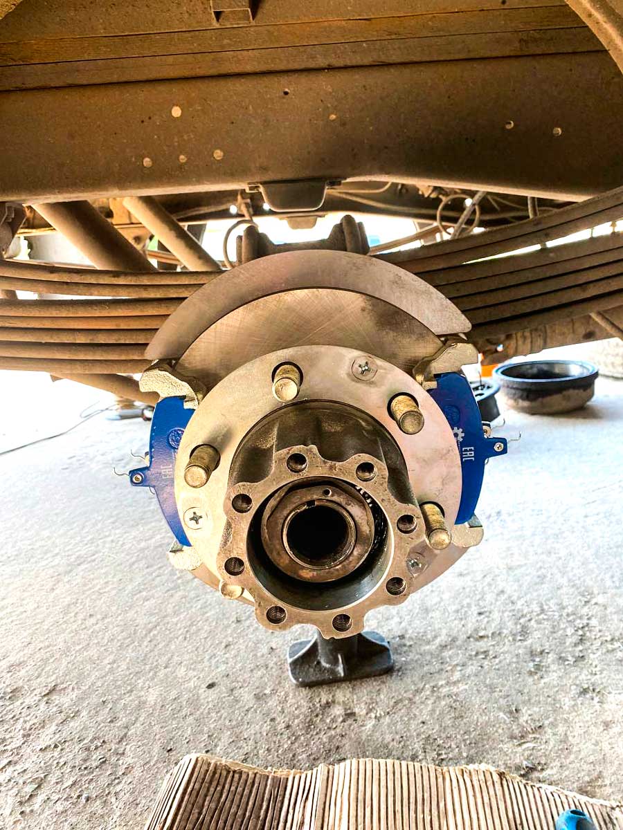 - Более мощные дисковые тормоза - под 2 суппорта (2 суппорта на 1 тормозном диске слева и справа). Второй суппорт идет как вспомогательный механизм, так как основные тормоза (1 суппорт) просто не в силах удержать огромный вес автомобиля и тем более груженого;