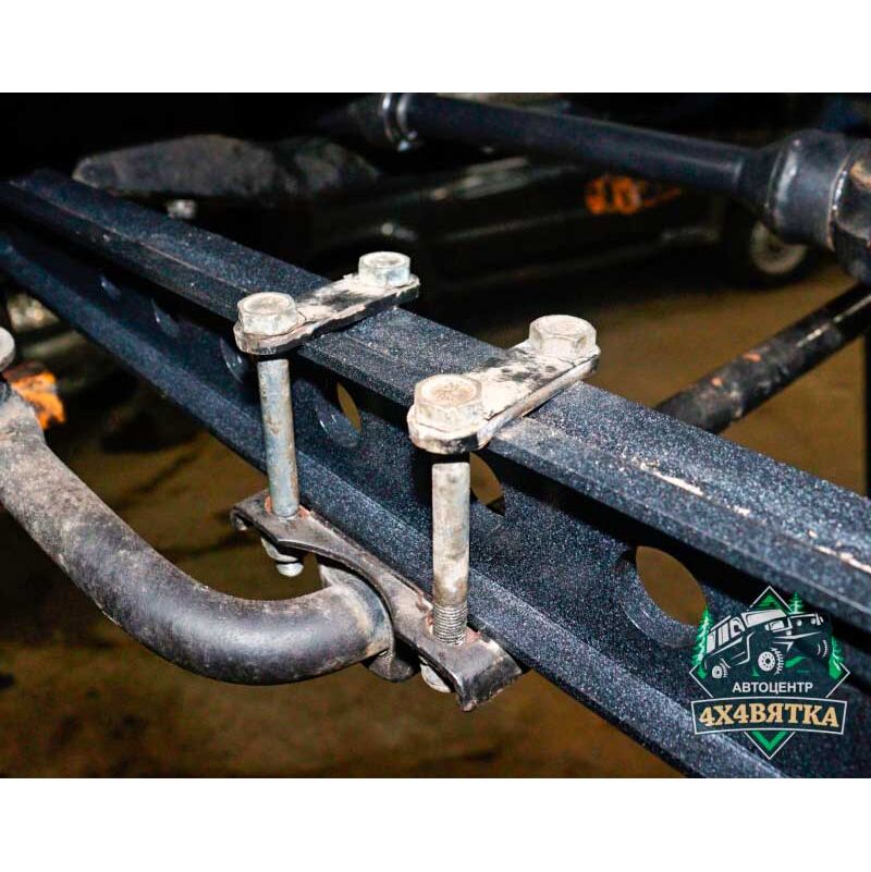 При установке усиленных продольных штанг (тяг) +10 мм необходимо заменить комплект крепления к стабилизатору. Родной комплект крепления невозможно использовать.