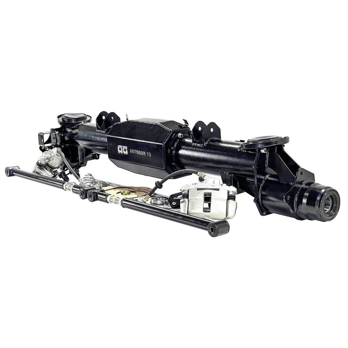 В данном портальном мосту нет редукторов, передаточное отношение 1:1. Поэтому при установке данного моста не нужно производить дополнительных работ с передней осью (кроме лифта). Балка состоит из нескольких деталей для возможности сборки. Все детали собираются между собой с применением прокладок, что обеспечивает герметичность. Чтобы установить портальный мост на Ниву с дисковыми тормозами под ручник AUTOGUR73, дополнительно нужны: